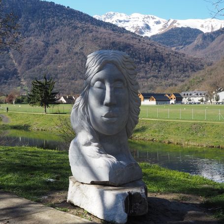 Cette sculpture impose par sa monumentalité et rend hommage à l’héritage antique de Saint Béat, célèbre pour ses carrières de marbre blanc reconnues à travers tout le pays durant l’âge d’or de l’Empire romain. Le visage féminin qu’elle présente incarne à la fois l’ancienneté, la valeur et la pérennité. La composition harmonieuse met en dialogue la texture brute et naturelle du marbre avec la finesse lisse et polie issue du travail artisanal, symbolisant l’équilibre parfait entre la force intemporelle de la nature et la créativité humaine. Une œuvre puissante et élégante, qui sublime à la fois le matériau noble et l’histoire millénaire qu’il porte.